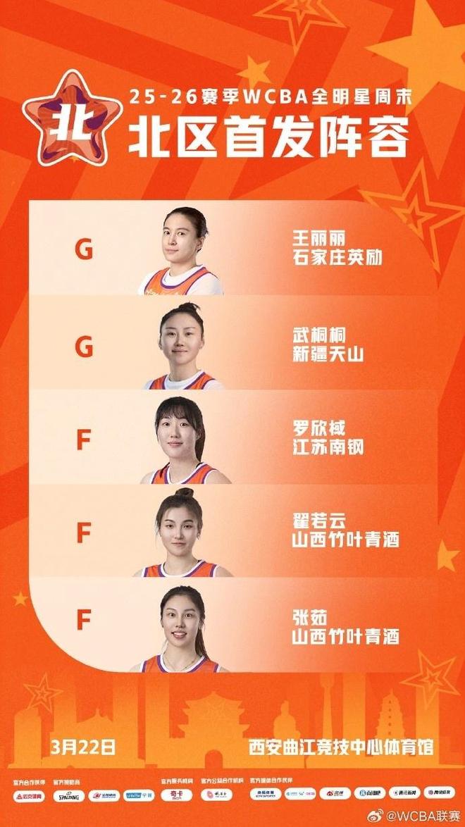WCBA官宣全明星首发:杨力维总票王武桐桐北区票王 广东4人入选