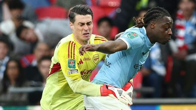 在2026年对阵曼城的决赛中,他取代了阿森纳的一号门将大卫拉亚首发,结果再次在大场面中栽了跟头。